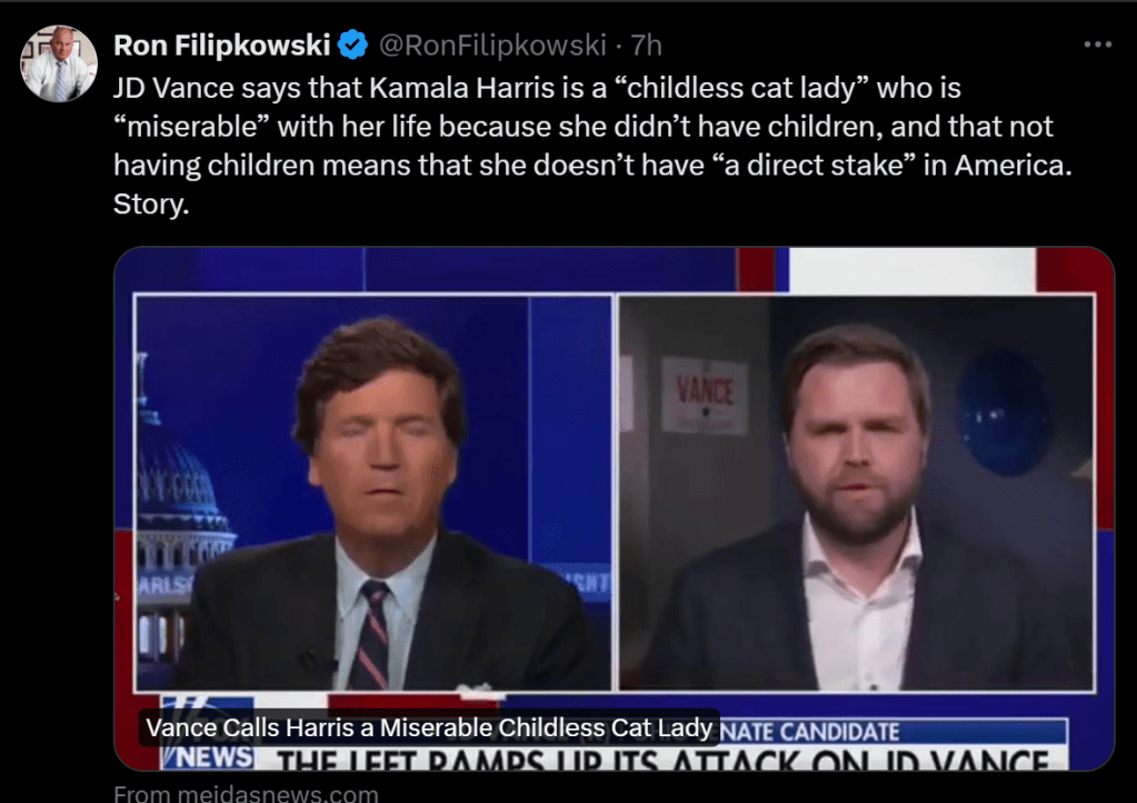 Debunk stupidity about childfree women. Why someone does or doesn’t have children is none of your damned business. (Side note, I personally find living a childfree life very not miserable.) Living in America gives you a direct stake in America. If Vance’s statement were remotely true, they’d praise Joe Biden for being a family man acting on behalf of America’s future. Instead, they bludgeon him with his strong paternal values to bloody him as corrupt. This is not a serious, good-faith criticism. We have to call it out.